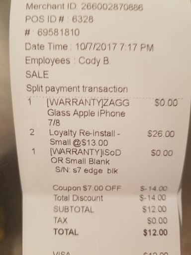 Read moreI have been a consistent Zagg customer for 5+ years and have always had a pleasant experience with the employees and products at the Washington Square location. Unfortunately, I recently had a terrible experience. I purchased a new iPhone so I had to go have a screen protector installed on the new device. I was well prepared to spend the money to get the new one installed and the employee that helped me that day was very helpful, knowledgeable, and friendly. However, the $70 best quality protector that they convinced me to buy shattered 2 days later without being dropped- I simply put my phone in my purse and when I took it out it had a massive crack in it. I reluctantly went back to Zagg to see if they could kindly accommodate a replacement since the item must have been defective. Nathaniel, the store manager, said it would still be $10! Previously I have been told that they offer a 2 week warranty period on the protectors so I was upset that I was told I had to pay $10 only after 2 days of having the protector on my phone. Nathaniel was extremely rude, unprofessional, and had absolutely no customer service skills. I would think an exception could be made due to a defective product or that the “store manager” could’ve at least tried to help me out. I’m very disappointed in this experience and how I...