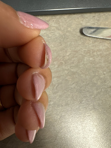 Read morePleaseeeee DO NOT GO, you will definitely regret it, Nail time should be relaxing time to pamper yourself but unfortunately it’s not the case there 1-you have to keep your eye on everything they do or it will be a disaster, 2-The service is really bad, the first time was nice but after that every time I went I regretted it, and I try to find excuses because it’s very close to home, but I think the good techs left so they just became unprofessional and I decided I won’t go ever again. 3-they overcharge you without letting you know ahead ( they charge for cuticle trimming with dip and they charge for almond shape!!!!! ) every small thing is with a charge. 4-inconsistency with their work, as you see in the pictures, very wide nails with some nails not straight, they overwhelmed my nails with glue as you see in the pictures how inconsistent and that’s because I added tips, they don’t communicate well to understand what I need. 5- there was a guy working on my nails and when I told him about the misshapen nail the lady in charge heard and she came and took over telling me he has to pick up her son and she completed aggressively on my nails that she...
