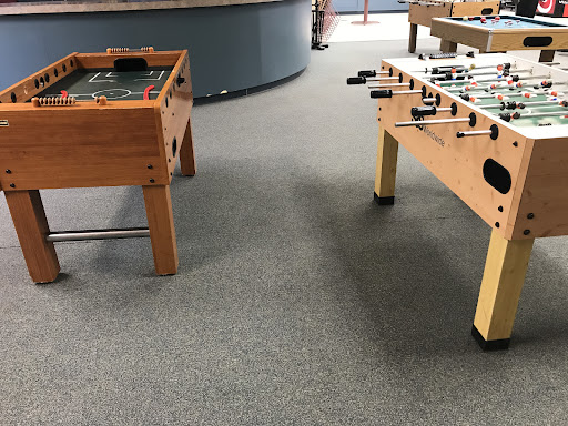 They have a pool table, 3 foosball tables, a ping-pong table tennis, a bumper pool table and an air...