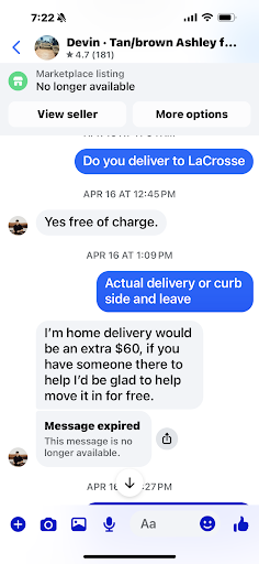 Devin is terrible, we made a deal on a furniture set only for him to say he can’t deliver it on set day. Ok no problem I can wait until after Easter holiday. So said he would deliver it first thing Monday morning and once again ignores me all day. Selling my set I had for my family expecting my new set and taking day off of work for him to not show or answer. Then says I’ll sell you another set and deliver it right away only for the same thing to happen. Ignore non stop and out a set again. Would never trust doing business with his company ever. After it all he blocks me so can’t get ahold of him at all. Now scrabble for a set since he pulled...