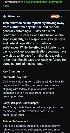Read moreCustomer service in store and Pharmacy have always been amazing even at 3 or 4 am when you need a prescription filled after leaving the ER or 5 or 6 pm when they are slammed with customers complaining, and you need your child's medication filled, always so patient and kind. Unfortunately, my most recent experience has caused me to seek another pharmacy. While I now understand, certain medications cause huge Stigmas , and no one should be embarrassed or made to feel less than or lied to about what medication they're prescribed, this CVS lied to me. Said my insurance refused to cover the medication because it was "too soon". I had been getting my prescription there for YEARS, every 28 days to the day and suddenly they would not fill it. That's OK, I understand, but don't lie, please. Especially when other pharmacies are now closed and the patient/Customer cannot get their prescription filled. Unfortunately most medications ,when taken daily for long periods of time can and will produce painful withdrawal symptoms . A notification would be nice, but to lie and say your insurance declined, when the insurance would have covered it even 3 days sooner is gross behavior. Just state that your rules have changed instead of having people questioning their insurance companies, more stress people don't need. I get you don't want angry customers, or "addicts" complaining, but neither do the reps at the insurance companies. Nor does the customer want to have to make calls in confusion. Just say No lol we won't fill this , we are already being sued. You would save yourself, the insurance company reps, and the patients much time and perhaps less stress. If you have a 28 day script, they now won't fill it...