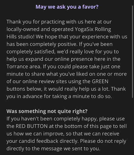 Read moreI did not love the request to only leave positive reviews on the public reviews pages, I feel this is a little manipulative and dishonest.