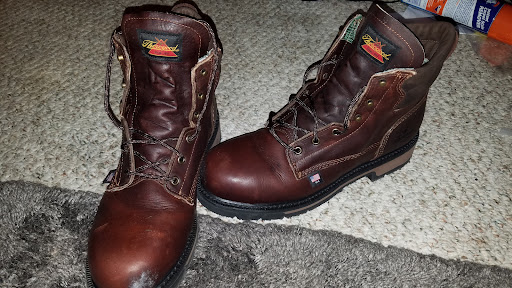 Read moreI bought my first pair of work shoes there about 4 months ago. I stand on a concrete floor a majority of the day. I was having some lower back pain and pain in my right foot as the ground is uneven where I stand. I explained all this to the owner and he recommended a pair of thorogood work shoes. I did try a few others on, but these stuck with me as the ones I wanted. Being made in America was a HUGE plus to me. Within 2 weeks my body pain was gone. I cannot recommend enough the care he takes for his customer. I returned today as there was some stitching coming undone in a unique place on the shoe to see what his thoughts were. He applied a very strong epoxy to the area to seal it and while it began to set he cleaned up some loose stitches for me as well. To me this is why I try my hardest to shop local. This level of knowledge and customer care only comes from a locally owned business that knows you create customers for life by treating...