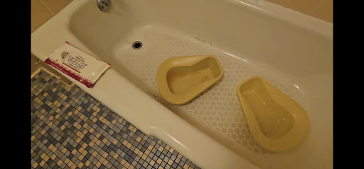 Furthermore, just a few hours earlier, somebody placed a bloody used urinal (kidney stone surgery, remember?) right in the middle of his UNFINISHED DINNER TRAY, which was supposedly an improvement since prior to that it was left in the bath room which is obviously out of his reach. He had just recovered from pneumonia a few weeks earlier. When someone has been on NINE or TEN prescriptions of antibiotics in just THREE MONTHS they are at MUCH greater risk of a fatal C-Diff infection. Our friend's husband died of a hospital acquired C-Diff infection so this is definitely a concern we are aware can be fatal. Putting a filthy nasty urinal in the middle of the dinner tray is NOT proper food hygiene practices! I told a friend who's a doctor, she was mortified. To be fair it seems rather common for hospitals to put urinals either on or around the food tray, something that needs to be changed - everywhere. Also, several times he was left unable to summon assistance.