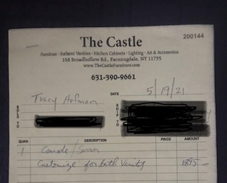 But that’s mild compared to my most recent purchase which can only be categorized as outright thievery. The owner, Osama, and I agreed to, and my receipt reflects, the price of $1895 for a piece of furniture to be customized for use as a bathroom vanity. When I was notified it was ready I questioned how that was possible as I hadn’t provided the measurements for the modification to fit the plumbing under the sink. Osama became angry on the telephone and wanted $100 more to make the previously agreed to modification. Since I was a regular customer, and intended to continue that relationship, I agreed to the additional cost. Moreover, I wanted the modification done properly as this was a one of a kind piece and my contractor is not skilled in fine furniture repairs.