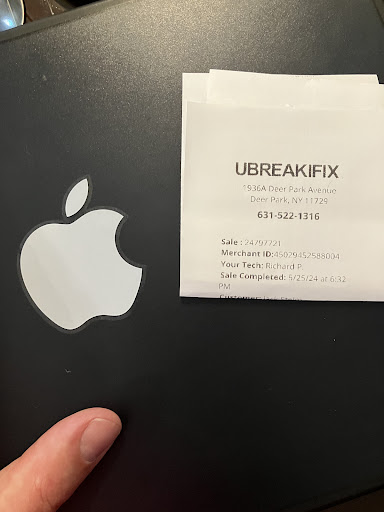 Visit #1: When i spilled liquid on my mint Apple Macbook Pro i thought it was the end. All files, programs, data stored on built in SSD drive gone. Of course i started to set appointment with the apple store ans authorized service departments but eventually i thought of local UbreakIfix at Deer Park. So many good reviews referring to same working over there people was good enough for me to give them a shot…and no appointments needed. Decided to take my Mac there. I was met by Matthew, big nerdy looking guy but he was very polite, calm, professional. Didnt over promise anything and was upfront with pricing and what to expect. Left my item with him. He is so good and organized he didnt even once forget to give me a call back with update on my repair. Imagine that after just two days (and lets not forget about his very professional coworker name i forgot) i got a call that they have managed to clean and fully restore my Mac. No privacy breach just professional work. On top of that they charged me for what exactly they have done. No fees or made up numbers. I call it PROFESSIONAL INTEGRITY. If i relocate ill drive through entire island just to give my business to not just UbreakIfix BUT to these people working in this particular location. They took apart my Mac, put together and didnt make a single tiny scratch on it in the process. Respect. Thank you guys. I have trust and confidence to send your way anybody with their computer, phone, electronic device.