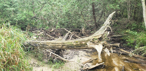 In terms of plants and trees, this is an excellent example of forest succession. Junipers are abundant in the sand dunes, the first plants that become nurseries for maples and white pines. Then into the forested area look for mature maples, spruce, white cedar, and hemlock. Abundant mushrooms.