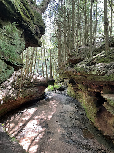Beautiful walk down to the lake. The trail is not difficult. Lots of roots to trip on though. Seemed to be about a half mile in to the lake. The dells was about one quarter of a mile in. It was very dry on our visit. Looked to have been dry for some time. It would be amazing to see with water flowing! Bring your swimsuit if you dare to jump in the lake at the end of the trail. The parking lot is rather small so you may have to wait for a spot. The lot fits about a dozen...