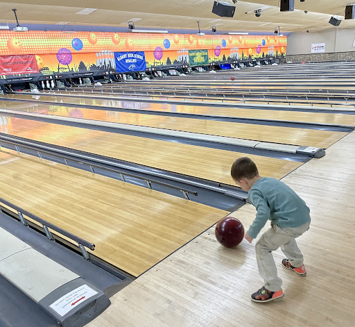 Going with kids was super easy. We got some really lightweight balls, they can set up bumpers when you check in and they have kid rollers (name of it?!) that help little ones roll the ball.