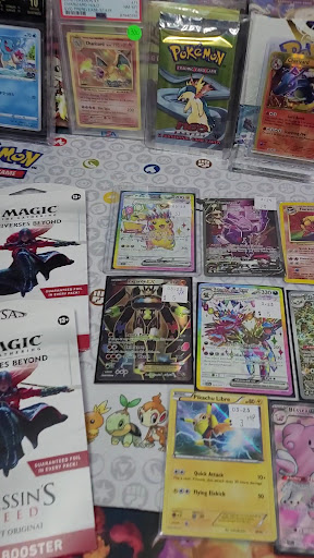 Read moreI LOVE THIS STORE!! Hands Down my favorite place to go! I live an hour away and drive past many card stores just to make it to this one! EVERY EMPLOYEE IS AWESOME! I usually go and hang out for 3 hours while I view their binders, find something I like, then go through my stuff I bought and propose a trade! They pretty much give you the amount you would get if you sold it on Ebay yourself! Except you don't have to worry about shipping, customer service, and returns! I even once sold them a slab that I traded to them for $25, it sold on my ebay the next day for $75, and I called the store and only had to pay $40 to get it back. Basically they offer very fair prices and they base it off what they bought it for, and that gives you the opportunity to snipe some cool cards that may be on an incline! Most importantly, they have stuff priced out, again to promote you to actually come into the store and snipe some cool pickups! Not how some stores are starting to do it where they don't price anything and then just look up TCG player prices! (That is no fun, and gives you no reason to go into the store) Everytime I go there I work out a $200-300 deal/trade and leave with the biggest smile on my face! I appreciate yall! Thank you foe being my happy place to have a good time with some like...