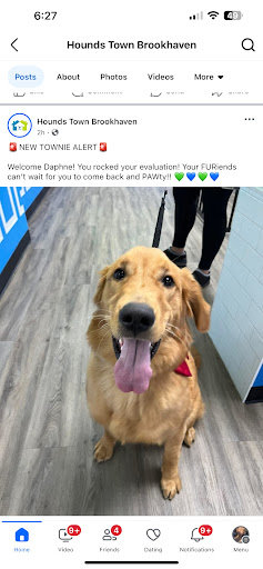 I have a super hyper large breed puppy named Daphne I got a few months ago in august 2024, and it was hard for me to keep up with her activity level, while also trying to balance work and school. She has a dog brother named Alvin but he is a x-small breed and 8 years old, he loves to sun bath with her and go for car rides to the beach or have treats together, but he is not as playful as her so she doesn't have any playmates at home except rarely when my cat Sabrina plays with her. I found out about Hounds Town a few moths ago in November and went with Daph for her evaluation. It was quick, and easy, and she passed! My girl has a great time whenever i drop her off for the day. It also helps me have a better day knowing she is in good hands and playing with other friendly pups all day! As of right now I don't bring Daphne as often as id like because I was let go from my job until April. Im home more often anyway because my school is half virtual. So we get to go on plenty of walks and hikes and play fetch in the yard, but I still try to let her have one day out of the week to come here and burn energy. Even after only one day I can tell she's more relaxed and chill for the next few days, because she got a full day to run and play. This place has very reasonable pricing for day care and boarding, and you can tell the owner is a dog lover. My Daphne gets just as excited to see him and the rest of the staff as she does to get to see all her friends!