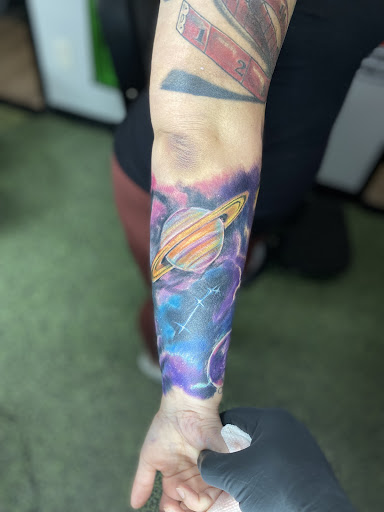 About 12 years ago i was searching for a tattoo shop to cover up garbage tattoos I had from younger years and for 4 to 5 years every one turned me away and mostly suggested I get a few sessions of laser removal then coming back and getting a tattoo done I wasn't trying to go that route I was realistically giving up hope that that was my only option and one day my girl and I were passing ink buster and we walked in in spoke to buster about doing the cover ups I didn't care what I got just wanted them covered up buster not only wasn't fazed by doing it he actually did exactly what I wanted he made me ideas come to life he did 2 insanely beautiful sleeve cover ups that I get complimented on every time I'm out and now has moved to my massive back piece cover up which I just went from my second session on Halloween's Eve and I'm Blown Away honestly so happy it brought me to tears to be able to have my shirt off without embarrassment I can't wait now for warmer weather to come back I suggest to anyone that wants any kind of tattoo work don't hesitate go down to Ink buster he's not only done two full sleeves and now two sessions in on my full back piece he also done 2 beautiful sleeves on my wife thank you again I am forever grateful for the work...