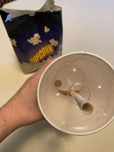 The other popcorn stands were shut down, I assume they can't afford keeping those running either. Towards either end of each part of the theater there are shut down popcorn stands, it looks creepy, like a Backrooms level.