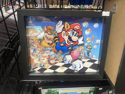 Adorned across the walls are 80s decals, a CRT playing the Q-Bert TV show I didn’t even know existed, action figures from my childhood, old and new consoles tested and ready for purchase at fair prices, amongst other great finds. I even picked up a pixelart shadowbox of Sonic, Knuckles, and Tails fighting Dr. Robotic which I already have hung up on my office wall.