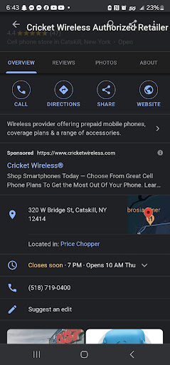 Read moreSo, I just went to this cricket in Catskill for the first time. There was this guy ahead of me in line with some ridiculous phone questions. I figured, "ah, jeez, old man with a phone, this is gonna take forever." The store manager, Megan, dealt with this guy so professionally. He clearly is in the store all the time and it was obvious they both knew each other well and had a nice relationship from all the issues he has with his phone. She went above and beyond with this guy and she was quick. She took care of me right afterwards and it was great and now I have a good phone. Anyways, this is a good spot with good staff that will take care of you. I would definitely...