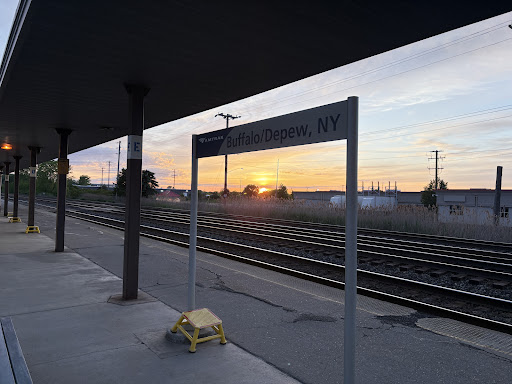 A quite smallish Station with 110 seats inside and Parking for 40 Cars, short term free parking. The average train picks up 5 to 30 passengers from this station. I have been here as of 21 July 2019, 19 times. While the Snack machines are the typical Two Dollars Ten Cent to three dollars seventy five cents. These prices are typical of Train Stations all along the Am Track New York Line. The Ticket Price to New York Penn' Station from Buffalo Depew is below 130 Dollars. The trip takes between nine and ten hours to complete. The Trains are Clean and Neat. The summer months are on average are a temperature of 83 degrees with a humidity of between 65 and 90 percent by 1:00 PM. I only travel in the spring summer and fall months. Snow causes delays, so I do not travel by train between nov 15 through feb 15 if I can help it. The trains depart from this station on average every three hours. beginning at 7:40 am going eastwards towards New York Pen Station. Be at the Station one half hour before depart if traveling with an E-Ticket or 45 minuets if buying a ticket at this station. The average age of child passengers is between 4 and 16 years of age. Adults rage from 18 to 65 with an average age of 27. there are two stops west beyond this station at Buffalo Transfer and Niagara Falls...