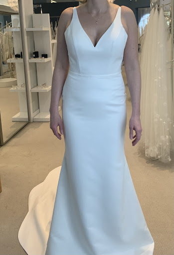 Alex was recommended to me by a friend who used her for her own wedding the year before. The best way to initially get in contact with her is to call/text since her online form didnât work for me. Alex did an amazing job as a seamstress and fitting my dress to my body shape. She is a perfectionist when it comes to adding details and finishing the bustle so it compliments with movement. The first two photos are me trying on the dress at NY Bride. I knew I wanted to add subtle details like a belt but my vision wasn't clear. Third photo is at my first appointment with her as she gives me an idea of what she would do and tell me the cost. You have to pay all upfront. Iâve never gone to a seamstress before to have a dress 2-3 sizes bigger tailored for me. I did not get another quote from someone else due to my timeline (and Iâm so glad I went with her!). Expect to pay a lot more than you think especially because she is making you a custom wedding dress. I bought different beading to bring in to show Alex for my dress. She had the idea of using beading on the straps, too! I bought the silver beading off Etsy (be sure to buy 2-3â more for your waist and I ordered extra for my straps). All credit to Alex for the idea of softening it with the small side pearls and tiny beads. Images 7-12 are the final images. Alex is a dress maker and designer. She has a great eye to make the dress compliment you. I had about 4 total visits with her and the second to last was to decide on the bustle. I didnât get a great photo of it but it moves/flows beautifully as I walk. She made a good point that the bustle should be beautiful because after the ceremony, the dress will be bustled for the rest of the night! Buy a dress you're comfortable in and it will be worth every penny for alterations. I felt so beautiful in my dress on my wedding day!...