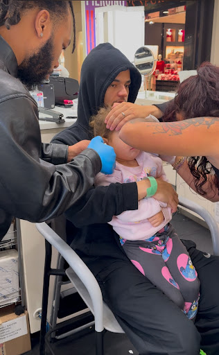 The girl that does the piercing was with the customer before us for over an hour and a half before she even would be able to do her piercing. Seems she was applying for a credit and was having some difficulty getting approved. When we arrived she was the only person on front of us so we decided to wait. Had we known it was going to take 45 minutes before her issues were resolved we would have gone to somewhere else. The person who was working with the girl who did the piercing was useless. He had questions for everything he did and she had to stop and show him what to do. It was a very frustrating experience. However my granddaughter is very happy with her piercing. I recommend if someone in front of you is having issues go...