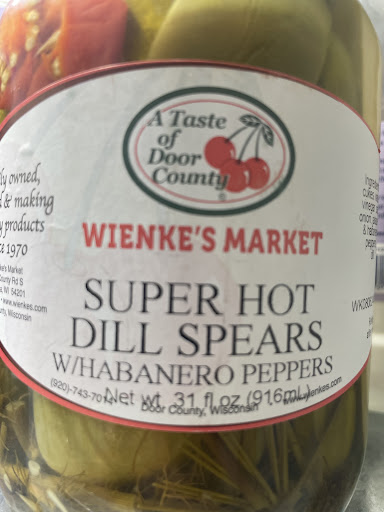 Read moreFamily operation with simple farmer's market setting featuring canned, jar, and other related products made by wienke's. We've thought their store bought jarred cherry pie filling to be one of the best flavor products for homemade pies, kringles, and pastries for many years. It was fun to stop today just to find out more about what wienke's has to offer. Baked goods, regionally made cheeses, sausages, even found some cherry wood smoked neuskes thick bacon out of Wittenberg, Wisconsin. Short stop but well worth it on our way back from door county. Easy stop on our way out of...