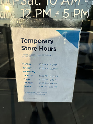 Read moreI could write book about the terrible experience that I had today so I will try to keep this short as possible. We were in the store for 3 hours wanting to transfer 4 phones from Verizon to Spectrum. There we TWO employees at the start (one was in training) and a line of 15 customers signed in, one customer just waiting to pay a bill after an hour or so he noticed a bill pay machine that was well hidden from view. After about 2 ½ half hours a third employee pops out and we were called on, he was a nice guy but had a heavy smell of marijuana (that is legal in New York) but imagine if your smelled a heavy odor of beer (Still legal but there is a time for that to.) So an hour goes buy and we get all the info into the computer and he stated that the card had a problem so I gave up and left as we had a dinner appointment will friends. We traveled about 45 minutes and got to our destination and I realized that he still had my driver’s license so back we went. The lines we much smaller by now and I went directly to him and asked for my license back and saw a customer in tears. Two days prior they have a sign up stating temporary hours through 6/13/2024 I took this picture on 6/17/2024. Chech my credit card company and the amount showed as a temporary charge. Now to get the canned response about contacting your company on facebook. I sure thats...