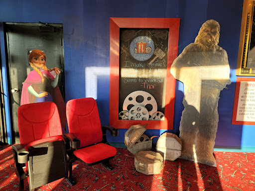We love this place. The parking lot is easy to get to/from the building and the vehicles. It's spacious and generally clean. The building still has a bit of retro nostalgia while still having the types of updates that make viewing with modern technology. Someone enjoys doing artwork! Which is an added touch these days. Talented chalkboard art, IMO. The variety of snacks and finger foods are pretty decent. The seats are comfortable, but not those super crazy ones you get sucked into. IYKYK. The bathrooms are clean, and there are plenty of stalls. The place is set up relatively kid friendly, too. From lobby to opposite exit, you can see all the way down. (Sus it out as needed, to each their own). There are accessible areas and seating, if applicable. Though admittedly, I have not been inside each theater. Take that as you will, and please call for specifics if you need accessible areas. Last but not least, the staff. Omigoodness! They are always super cute, helpful, and engaging. They like what they're doing. Ya know? Every time we visit here, they're genuinely smiling at everyone. They make jokes and connect with their guests. It's great place to unwind and break up the routines. I highly recommend. Sometimes, if you're lucky, you might catch a slow night, and it'll feel like a private showing. *A guilty little pleasure,...