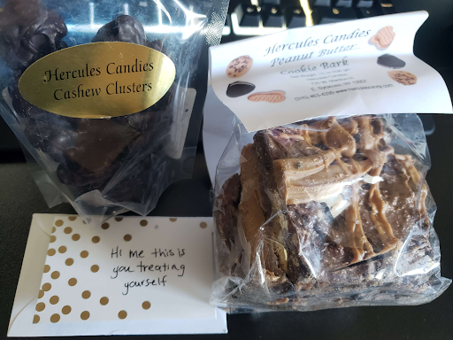 Read moreI cannot recommend Hercules Candy Co enough!!! My friends and family are now hooked thanks to me! ☺️ I have made 3 big orders already in a little under 1 month 1/2 and have got their Peanut & Cashew Brittle which is my absolute FAVORITE and what I have ordered the most of. I have also ordered the Chocolate Ribbon candy filled with Peanut Butter & Marshmallow Fluff & the flavor peanut butter and chocolate filled ribbon candy and I was super excited to get the little cotton Candy hard candy pieces too which are so yummy. Of course as a HUGE fan of not only their candies & sweets, but also obsessed with their YOUTUBE channel so I HAD to order some merch as well! I bought two hats and a jacket to rep my favorite family owned candy company and Youtube channel! ❤️ Go on Hercules Candy’s YouTube channel where you can watch them make everything from scratch & get to know each of them who work at Hercules Candy Co! I highly recommend everyone watch their YouTube channel because it is so awesome & relaxing to watch the ribbon candy being pulled & stretched & then seeing how everything comes together while laughing with everyone almost as if you’re there with them! You can check out their website where you can order everything and check out their menu which has all kinds of goodies where I am certain you can find something you like and I think it’s really neat that they even have vegan options for those who are vegan! I highly, HIGHLY Recommend Hercules Candy because their candy is always fresh and super tasty and it’s nice to know you can watch any candy, chocolate, or sweet be made on their channel!! I will be ordering in bulk for my next order because I always have to have a back up of my peanut & cashew brittle! Which by the way.. Hercules Candy is the only place that has peanut/cashew brittle that you can get online or in their store in person! I wish I lived in New York so I could go visit their actual store but maybe one day I can make that...