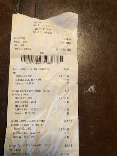 Read moreIf I could rate the Old Navy at the Dewitt location a zero I would. The employees here from management to everyone other than Will are incredibly rude. They were very aggressive to make a sale but upon returning to the store to make a return with my receipt it was such an issue that Iâll never step foot into this location again. The Clay location returned everything with no issues and they were amazing to deal with. Will was great at the Dewitt Old Navy. However, everyone else that I talked to was incredibly rude to say the least. Stay clear from...