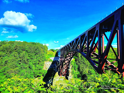Read moreThis current bridge broke ground in 2015 after plans were announced to build it on November 29th, 2011. The bridge was completed in 2017. The bridge replaced a steel trestle built in 1875 by the Erie Railroad. The sad thing is, the state was given the opportunity to convert the old trestle to a pedestrian crosswalk, but they refused citing a lack of funding. Those two foundations are all that remain of the old bridge; all the other remaining pieces...