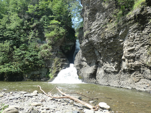 Hidden gem! Mine Kill Falls is a waterfall in Blenhemin, NY. It is located just outside of the Mine Kill State Park. There is no charge to see the waterfall. The waterfall has an upper falls viewing stand area and a lower falls viewing area. The lower falls is the better of the two areas to view the falls from. It requires a short hike to get down to the bottom of the falls. The trail to the bottom is well marked and easy to follow. The upper viewing area isn't bad and you can see a good part of the waterfalls, but the view is obstructed by trees. It is an easy walk from the parking lot to this part of the falls. Although the view is not as good the lower part of the falls take some time to go here. Most people will probably spend an hour or less here. If you are in the area or passing through be sure to stop by and take a glimpse...
