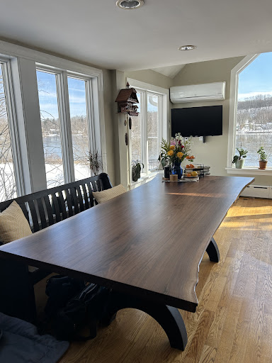 The picture does not do the beauty of the table justice! Book matched black walnut at its finest! What neither pictures or words can explain is the extraordinary customer service! Toni, as does the team, deserves the award for No.1 customer service! Getting my dream table took hard listening and translating â stereotypical German Karinâ into English design specification/our table! Not all black walnut is created equal, the grain, the staining etc⌠then you have customers like me that love wood imperfections, but not to many, also not all, but then the ones not acceptable to most are perfectly fine with me. Letâs not forget base, must be adjustable, unique of course, modern, but only a little because it should resemble old fashion industry, enough detail without being kitschy, not to much âstuffâ it needs to be easy to be cleaned (dogs & dust). Minimum height to fit chairs? Yup thatâs a thing and ooo the Husband, yes he to has some thoughts! đ well I could go on, but what I am trying to say somehow the team pulled it off and thanks to Sal we could afford it as well! Do I recommend? YES!!!! Absolutely!!!!! Karin and...