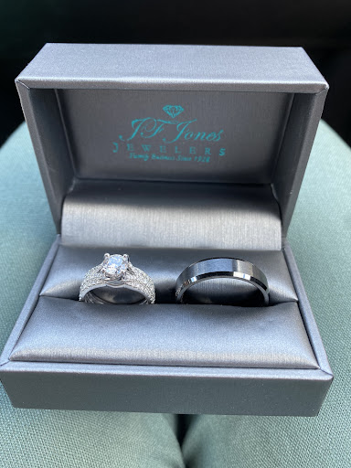 We are closer to our future and I now have my beautiful engagement ring that my fiance's put on my finger from JF Jones Jewelers. We got there at 3:30 on a Saturday just to get it sized. They were closing at 4pm. I had the pleasure to meet the owner Brittany who remembered my fiance' and his name from when he purchased the ring awhile back. Brittany, the owner was wonderful to us. She was warm, sweet, helpful, accommodating, and genuine. We then looked at wedding rings. We stayed till 4:30. Brittany allowed us to try on wedding bands. We now have it significantly narrowed down. Based on our wonderful experience we look forward in buying all the wedding bands at JF Jones Jewelers. We are happy to support a long standing local family that is on its 3rd generation of ownership. There is a reason why they have lasted 3 generations. The service is exceptional. Brittany also extends her love to future brides by providing a goodie gift bag . There are a number of necessary love moments in that bag for the bride. A lot to enjoy at JF Jones Jewelers!...