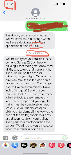 they take there time had a 3pm appointment checked in with them at 245 pm waited until 5pm for them to tell what door to put my trailer in. waited another 3 and half hours for them to tell im loaded. finally when i was out of there it was 845 pm. everytime you turn around i was watching there loaders come out and take cigarette breaks every 20 minutes , asked them whats going on with my trailer all they do is give you the run around kept saying we are loading. the guy in front of me was waiting there for 9 hours to get his trailer loaded that place is a joke if it was up to me i would never get aload from there again and they over load you to.. drivers dont waste your time and they dont put times in and out on your bills you ask them to put times down and they say its company policy they cant put times...