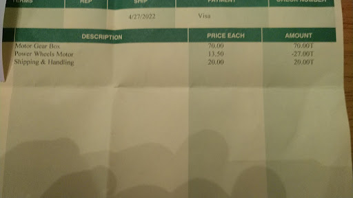 Read moreThey are a rip off. I ordered parts from them and they shipped it to me but they forgot to remove the packing slip. They changed me DOUBLE and the lady said they don't make any money on fisher price power wheels and that's a lie. It took me a month to get the parts and I had to call them. They never called me. Very very very poor business and customer service. Stay away. I wish...
