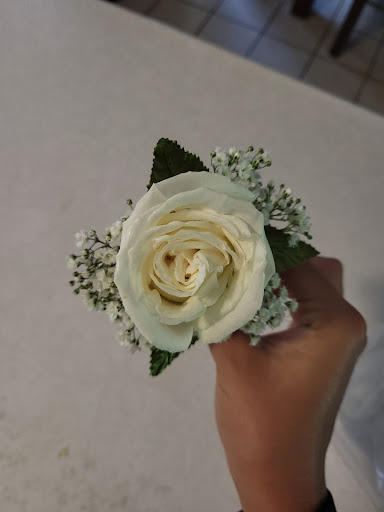 I sent two pictures via email as inspo to create some prom flowers for my daughter and her date. I specified he wanted a coral flower. I requested they use the colors in the tie photo for the arrangements. The colors were coral and pinks with greens. I got all white flowers that really looked old. I had to remove all the outside petals within 24 hours just to make it work. I had to find and add flowers that were colors I originally requested. I paid $60 for all white flowers with baby's breath that is, you guessed it, also....white. Why on earth would I send pictures of a tie if I wanted nothing but white flowers? When I visited a month prior I was told the corsage would be on a slap bracelet. This corsage was on thin elastic and was wobbly. The fat stem was visible I do not know why.