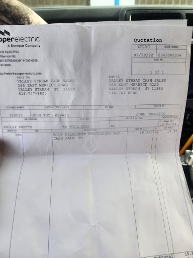 There are usually trucks parked in front of the store so plan on parking on a side street. Store is clean and uncluttered with a parts counter behind which is a huge display of Milwaukee brand tools. Opposite the counter on the walls hang a large selection of electrical specialty tools and accessories. I've been there twice, and there were 2-3 guys who worked the counter.