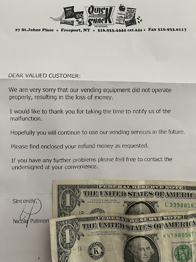 Went to ice skating rink with my kids, the experience was great. The ice wasn’t fully frozen in all areas I guess because it was a warm day. The cost to skate is reasonable. Unknown to us one vending machine was not working and we lost $2. We called the phone # for a refund and 3 weeks later we got a letter with $2. I didn’t expect it but was really nice that the vending machine company honored their company policy.