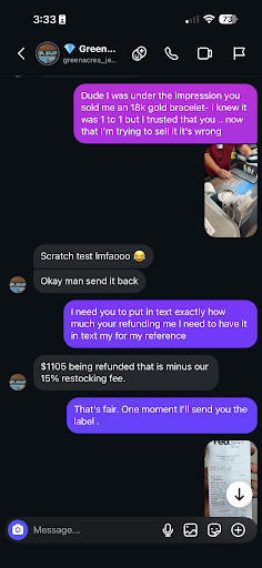Gave these Guys my Jewelry to repair including a sentimental ring that was broken. Itās time to pick up my jewelry I noticed a diamond is missing so I told the gentleman who then told me they will repair it he gave me a receipt told me to call in to check if itās ready. So today I called a next gentleman told me the ring is ready to pick up so I go to pick up the ring knowing what transpired before I inspected my ring now upon inspection the so called diamond they replaced for the missing one does even look like a real diamond all my diamonds on my ring clarity all match very clear u informed position. This new replacement diamond is very cloudy looks out of place from the other original diamonds. The placement of the diamond was not professionally done. Not sure if itās because Iām not there race my busy and money means nothing. Itās time for these businesses in our black neighborhoods respect us as black People and Black men. I really need my ring back to wat is was when I dropped it...
