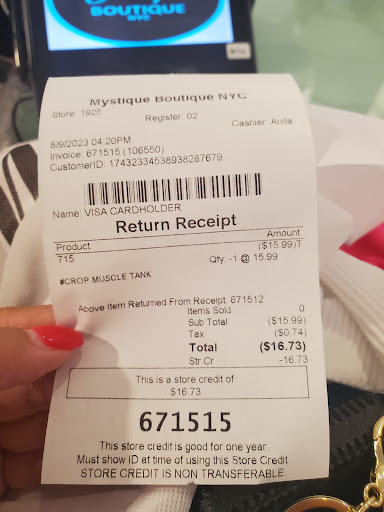Today, I went to Mystique with the knowledge that any clothes I purchased that did not fit or I did not like would have to be returned if I wanted my money back. When I got to the register I was informed that “all bodysuit sales are final” - this is not a clearance item or a discounted item, it is a popular style of women’s shirt/tops. I was shocked and said “but I can’t even try this on?” and all they said was it is their policy.