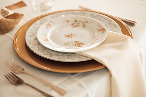 They have these beautiful vintage plate setups and glasses that you can add to your day--I compared to the cost to rent from other rental places and it was the same and I loved the look of the vintage much better.