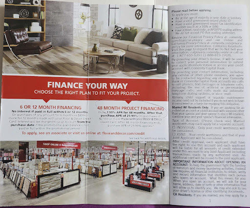By the way Floor and Decor floors are squeaky even with most expensive under layer barrier they sell. Again.. AVOID!! I will send this information to media and if Comenity doesn't fix this immediately I will take legal actions.