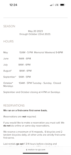 Read moreMotion To Go gets the job done! Do not expect friendliness or a big welcome. You can expect a map and answers on closing time. They also sell bottled water and clothing in their little gift shop area. Located just 5 minute walk from the ferry. They offer bikes, E bikes and mopeds. We chose the bikes what you rent by the hour for half the price of E bikes. Note you cannot share a moped so need to rent one for each person. The ride out to the state park was awesome. Nice and flat with a bike lane. Takes 35-40 minutes to get out to the park on a regular bike. There is no water available at the park-just basic bathroom needs. There is a great boardwalk at the park along the water. Easily accessible on a wheelchair too. We took the scenic route home that was longer and more hills but worth it. This route brings you by more houses, the golf course and the marina. Awesome experience that included exercise and access to the whole island. Would definitely rent bikes again!! Only 4 stars because a little customer service would have been nice when we...