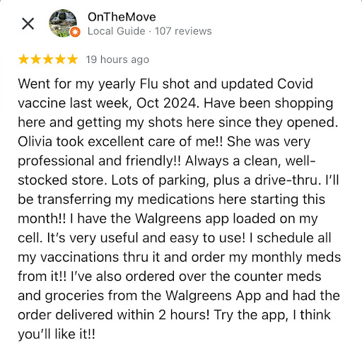 Read morewas supposed to get flu shot yesterday at Walgreens Lake George at 10:30. Came early but was told it can't be done immediately. At 10:25, my husband and I asked again when will we get the shots. Pharmacist Abigail who had time to chat with delivery man, run around doing other stuff, got very defensive and told us if we are not satisfied, to go elsewhere. She repeated advise to go elsewhere after we spent half an hour waiting and not being checked in !!! Terrible...