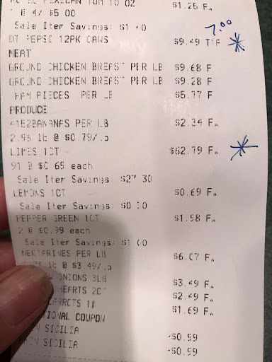 Today though was the icing on the cake… I purchased a single lime that was $.69 . I normally watch my items being rung up but was busy placing items in my cart. I was shocked when my groceries totaled $177.61. Upon arriving home I went over my receipt and discovered I was charged for 91 limes totaling $62.19 ! I also found another sale item that rang up wrong well over the sale price.