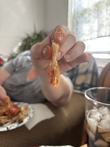 Decided to have takeout last night. First the employees were good. The wings were cooked right but the kid apparently doesnât understand the meaning of LIGHTLY sauced they were swimming in sweet and tangy literally submerged!!! I donât think I have ever had a pizza that HORRIBLE in my life sauce was bitter the outer crust was burnt and the dough was so thin you literally could see daylight thru it when the woman who owns it now took it over the pizza was really good donât know what happened but now I will never order a pizza from there again and will NEVER recommend it to anyone so sad the picture shows the crust my wife is holding and it was folded to...