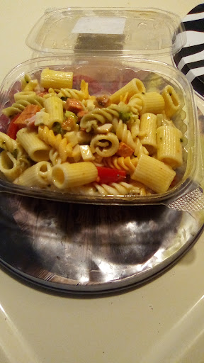 So even though they dont have the best fresh fruit and veggies I gave them a chance and got some lettuce and grape tomatos. The lettuse was pretty small and a little wilted but after the outer layer was off it was fine. The tomatos looked great and i was impressed with how firm they were. I did find one in the middle squished and thought that it was odd that one was so over ripe when the others were great. Even so i took the bad tomato out and thats when i found this white goody, stringy thing under it. It was enough to make me throw oyt my whoke salad....