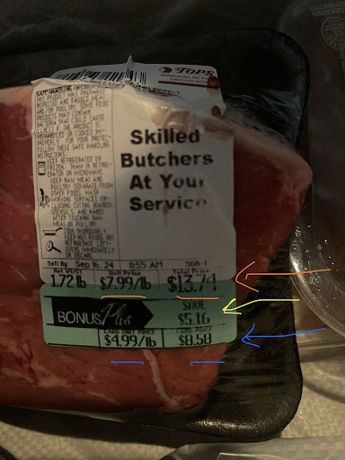 Manager working this night in the purple shirt was super unfriendly and cut me off as I walked in. Same manager was “helping” my cashier when the meat would not scan. The cashier was asking if it would still take off the bonus card discount at the end. Manager kept answering that the meat department sets the price. Which did not answer the question. Checked my receipt- it did not take off the discount. I went back in and the cashier repeated what she was told. Had my husband look at the price tag and we both know they’re not wrong. They charged me the full amount as if I didn’t have a bonus card. Groceries are expensive right now, this money makes a difference. I didn’t went to be perceived as a Karen but now I am thinking about how I wished I went back in and grabbed the manager. I just felt embarrassed when I thought I was being stupid and not understanding the price. Photo has it second...