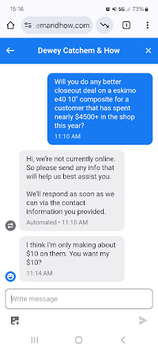 Read moreMy boyfriend bought a very expensive live scope from here that was already put together and when he got home, the product didn’t work. He worked on it for hours. Eventually, he concluded it was missing an entire wire that essentially rendered the product useless. Never used it once and brought it back the NEXT day explaining the situation. The employees said no returns on electronics and would not even try and diagnose or fix the problem THEY made. Owner absolutely refused to help. Luckily, a kind customer in the store helped him figure out the issue. Otherwise, he would’ve been out $3,000 for a faulty product due to Dewey’s error. I would absolutely not recommend this store - go anywhere else if you want working products and any sort of...