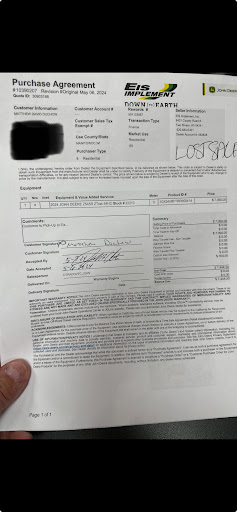 Read moreNo communication between sales and service. Eis will charge u for equipment u have never received. Poor management. Clearly chris eis is lil confused cause when called service they told me that would not be ready till mid or early next week. Service said they had to set machines up in order. Later that day Eric called me say if we get the mower set up would u still be interested in getting the machine. Through all of this never heard a work from the salesman John. So never got the mower and than week later I get a statement from John Deere credit for the full price of mower with interest. But Chris says never got charged for it. So reached out to Eric and Chris reaches out to me and through this he sends me a returned merchandise and it’s dated may1st kinda odd but the purchase order what signed may 6th. So u can figure out. Pics...