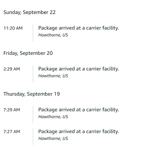 Read moreI was awaiting delivery of an item I needed for Christmas Eve. A pie plate… It was to be delivered by 11 PM on Monday, December 23. I was tracking the delivery and it said four stops away for about two hours. Then I noticed it said three stops, then two stops. It was on my street at 10 PM and then in real time I noticed The vehicle moving past my home and getting on the highway. It was evident that I would not be receiving my delivery that day, even though Amazon said it was still arriving. Now I got a notification saying it would be delivered today by 11 PM. I no longer need it. Horrible, horrible service from the Hawthorne location. Better service...