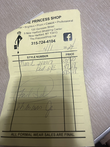 Had a wonderful shopping experience once we finally got in. The first night to just look the owner was closing so my son (in crutches recovering from surgery) crutched it out even though her door was open. The Saturday we returned, the staff was excellent, it was extremely busy and the owner was excellent with a very shy 14 year old girl. They were very accommodating especially with all the excitement, we had two dresses on hold, a red $438 and a blue 4something as well. They were placed on a “favorites card” for when we return. Well after shopping we returned today with my husband to pay and the card showed $438 but suddenly the price jumped up $100 to $538. Questioned it but zero response, it’s late and my husband and I both had long day of work still having to go home and make dinner we walked out paying the extra hundred the total was $585.08. Beautiful dress but might not be $585.08 of a beautiful dress but the customer service was worth thousands and we did have a very pleasant experience despite the odd business practice. Highly suggest The Princess Shop to anyone with a shy girl, they have a separate seating area for men that’s very comfortable and it’s tucked away from the girls which I...